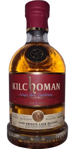 KILCHOMAN   OA   Private cask bottled exclusively for München Spirits   Bourbon cask 97/2007   Alkohol: 52.4%   Distilled: 2007   Bottled: 2022   Alter: 15yo   Link zur Whiskybase
