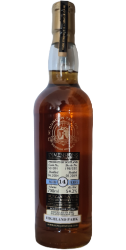 HIGHLAND PARK   Duncan Taylor   Dimensions - 350 Flaschen   Oak cask 501091   Alkohol: 54.2%   Distilled: 06.2004   Bottled: 05.2019   Alter: 14yo   Link zur Whiskybase